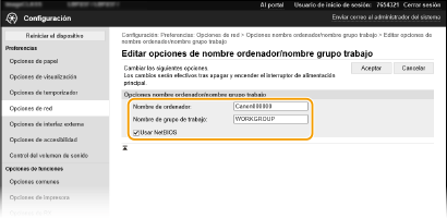 El nombre del grupo de trabajo es un nombre para agrupar varios ordenadores de forma que las funciones de red básicas, como el uso compartido de archivos, estén disponibles en una red Windows. Introduzca caracteres alfanuméricos en el nombre del grupo de trabajo al que pertenece el equipo.