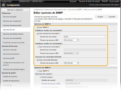 [Opciones de SNMP].