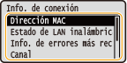 La dirección IP no está correctamente configurada si aparece como "0.0.0.0". Si conecta el equipo a un concentrador de conmutación o a un puente podrían producirse errores de conexión aunque la dirección IP esté configurada correctamente. Este problema puede solucionarse configurando un intervalo de tiempo antes de que el equipo inicie la comunicación. Configuración de un tiempo de espera para conectarse a una red Puede imprimir la lista de las opciones de red actuales. Lista datos de usuario/Lista datos administrador sist |