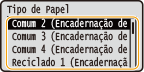 Se você frequentemente precisa trocar o papel carregado, configure para <Livre>; isso reduzirá o número de etapas necessárias para alterar a configuração todas as vezes. Todavia, observe que esta configuração permite que a máquina realize a impressão mesmo que haja uma incompatibilidade entre a configuração do tipo de papel no driver da impressora e o tipo de papel efetivamente carregado na máquina.