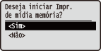 Se <Tela quando mídia memória está conectada> estiver configurado como <Ativado>, a tela para iniciar a impressão de mídia de memória é exibida quando você insere um dispositivo de memória USB enquanto a tela Início é exibida. <Tela quando mídia memória está conectada> ![]() Como as telas não pode aparecer no modo de suspensão, saia do modo de suspensão antes de inserir um dispositivo de memória USB. |