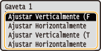 Selecione a combinação de direção de ajuste e lado de impressão.