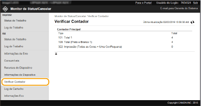 Faça o logon na Interface Remota (Iniciando a Interface Remota [Monitor de Status/Cancelar]  [Verificar Contador]