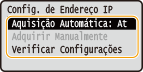 Atribuindo automaticamente um endereço IP1 | Selecione <Aquisição Automática>. |