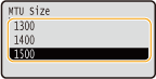 In most Ethernet networks, the maximum size of a packet that can be sent is 1500 bytes. A packet refers to a chunk of data into which the original data is divided before being sent. The maximum transmission unit (MTU) may vary on each network. Change the settings of the machine as necessary. For more information, contact your Network Administrator.