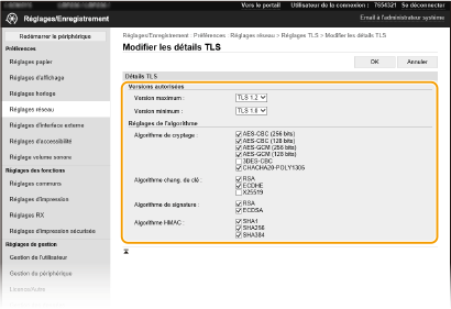 Cochez la case de l'algorithme à utiliser pour TLS. Certains algorithmes ne sont pas disponibles pour certaines versions de TLS.