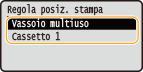 Se la stampa di un documento non è centrata o non rientra nell'intervallo stampabile, regolare la posizione di stampa. È possibile regolare la posizione di stampa per ciascuna alimentazione carta. È possibile regolare la posizione di stampa nell'intervallo da -5,0 mm a +5,0 mm con incrementi di 0,1 mm.