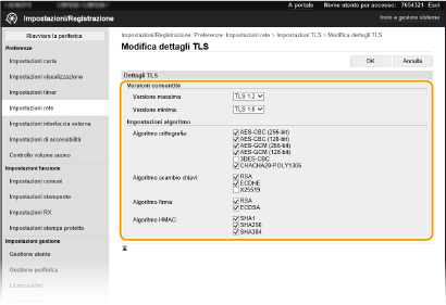 Selezionare la casella di controllo per l’algoritmo da utilizzare per TLS. A seconda della versione di TLS, alcuni algoritmi potrebbero non essere disponibili.