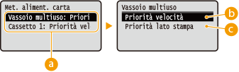 <Vassoio multiuso> <Priorità velocità>  <Priorità lato stampa> <Cassetto 1> <Priorità velocità>  <Priorità lato stampa> |