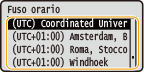 Impostare <Fuso orario> prima di impostare data e ora correnti. Se si modifica l'impostazione <Fuso orario> in un secondo momento, vengono modificate di conseguenza anche data e ora correnti. |