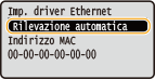 Configurazione manuale delle impostazioni Ethernet1 | Selezionare <Rilevazione automatica> <Off>. |