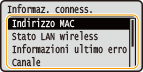 L'indirizzo IP non è configurato correttamente se viene visualizzato come "0.0.0.0". La connessione della macchina a un bridge o hub di commutazione può non riuscire anche se l'indirizzo IP è configurato correttamente. Questo problema può essere risolto impostando un intervallo prima che la macchina inizi la comunicazione. Impostazione di un tempo di attesa per la connessione a una rete È possibile stampare un elenco delle impostazioni di rete correnti. Elenco dati utente/Elenco dati gestore sistema |