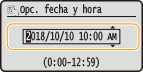 Configure <Zona horaria> antes de configurar la fecha y la hora actuales.Si la opción <Zona horaria> se modifica, la fecha y la hora actuales también se modificarán. |