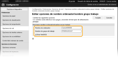 El nombre del grupo de trabajo es un nombre para agrupar varios ordenadores de forma que las funciones de red básicas, como el uso compartido de archivos, estén disponibles en una red Windows. Introduzca caracteres alfanuméricos en el nombre del grupo de trabajo al que pertenece el equipo.