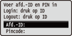 Als Afdelings-ID-beheer is ingeschakeld of als Systeembeheerders-ID's zijn geactiveerd, kunt u het apparaat pas gebruiken wanneer u hebt ingelogd. Wanneer het aanmeldingsscherm wordt weergegeven, volg dan onderstaande procedure en voer de Afdelings-ID en pincode in.