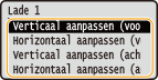 Als het document excentrisch of buiten het afdrukbereik wordt afgedrukt, moet u de afdrukpositie aanpassen. U kunt de afdrukpositie voor iedere papierbron aanpassen: in het bereik -5,0 mm tot +5,0 mm in stappen van 0,1 mm.