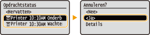 Selecteer het document dat u wilt annuleren, en selecteer <Annuleren>