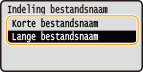 Selecteer <Korte bestandsnaam> of <Lange bestandsnaam>