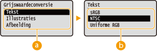 <Tekst> <sRGB> <NTSC>  <Uniforme RGB> <Illustraties> <sRGB> <NTSC>  <Uniforme RGB> <Afbeelding> <sRGB> <NTSC>  <Uniforme RGB> |