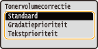 Stelt de hoeveelheid tonertoevoer zodanig in dat de juiste resolutie is gegarandeerd voor tekst en lijnen, en dat de juiste kleurtint is gegarandeerd voor andere types printgegevens.