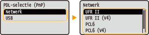 Selecteer een paginabeschrijvingstaal (PDL), zodat de machine wordt gedetecteerd als een printer die compatibel is met die taal wanneer de machine via Plug and Play wordt aangesloten op een computer.