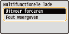 <Multifunctionele lade> <Uitvoer forceren>  <Fout weergeven> <Lade 1> <Uitvoer forceren>  <Fout weergeven> |