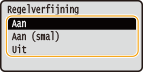Geef aan of u wilt schakelen tussen papier van A4-formaat en het formaat Letter als een van deze papierformaten is geladen, maar het andere formaat niet. Als u <Aan> selecteert, en u A4 formaat opgeeft om op af te drukken vanaf de computer terwijl er geen A4 formaat in het apparaat is geladen, wordt het document op Letter-formaat papier afgedrukt.
