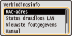 Het IP-adres is niet goed geconfigureerd als dit wordt weergegeven als "0.0.0.0". Als u het apparaat aansluit op een switching hub of bridge, kan er sprake zijn van een verbindingsfout, zelfs wanneer het IP-adres goed is geconfigureerd. Dit probleem kunt u oplossen door een bepaald vertragingsinterval in te stellen waarna het apparaat mag gaan communiceren. Een wachttijd instellen voor verbinding met een netwerk U kunt een lijst afdrukken met de huidige netwerkinstellingen. Lijst gebruikersgegevens/Gegevenslijst systeembeheer |
