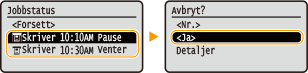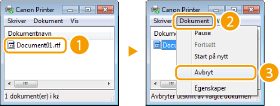 Velg dokumentet som du vil avbryte, og velg <Avbryt>