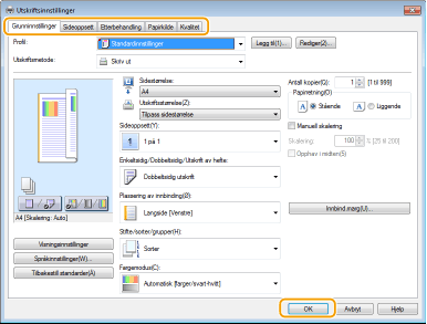 Angi utskriftsinnstillingene etter behov, og klikk på [OK].