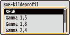 Innstilling av dette elementet er utilgjengelig når <RGB-kildeprofil> er stilt inn til <Ingen>.