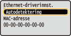 Konfigurere Ethernet-innstillinger manuelt1 | Velg <Autodetektering> <Av>. |