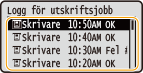 När <Visa jobblogg> är inställt på <Av> kan du inte kontrollera utskriftsloggarna. <Visa jobblogg> |