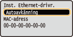 Konfigurera Ethernet-inställningar manuellt1 | Välj <Autoavkänning> <Av>. |