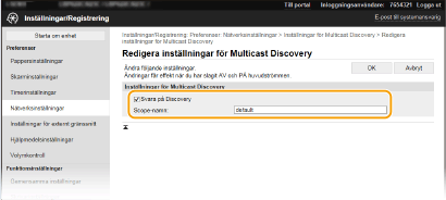 1 | Välj [Inställningar för Multicast Discovery] [Redigera]. |