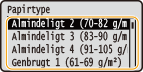 Hvis du ofte har brug for at ændre det ilagte papir, skal du indstille det til <Frit>; dette vil reducere antallet af nødvendige trin til at ændre indstillingen hver gang. Hver dog opmærksom på, at denne indstilling lader maskinen udføre udskrivning, selv hvis der er uoverensstemmelse mellem papirtypeindstillingen i printerdriveren og den papirtype, som rent faktisk er ilagt maskinen.