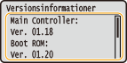 Kontroller firmwareversionenDu kan kontrollere firmwareversionen fra maskinens kontrolpanel. Når du er færdig med at udføre firmwareopdateringen, skal du sørge for, at opdateringen blev udført korrekt. Kontroller firmwareversionen |