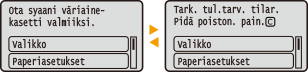 Näytössä näytetään viestejä tilanteissa, kun esimerkiksi paperi loppuu tai väriainekasetin käyttöikä päättyy. Katso lisätietoja online-opassivuston kohdasta Vianmääritys (FAQ).