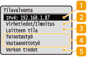 Voit määrittää, näytetäänkö IP-osoite <Tilavalvonta>-näytössä, asetuksella <Näytä IP-osoite>.