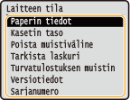 <Poista muistiväline>Käytetään USB-muistilaitteen turvalliseen poistamiseen. Näytetään vain, kun laitteeseen on kytketty USB-muistilaite.