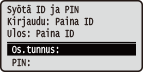 2 | Syötä tunnus. Jos PIN-koodia ei ole tallennettu, siirry vaiheeseen 3. |