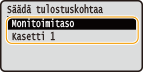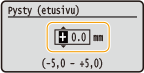 Jos asiakirja tulostetaan sivuun tai tulostettavan alueen ulkopuolelle, säädä tulostuskohtaa. Jokaisen paperilähteen tulostuskohtaa voidaan säätää. Tulostuskohtaa voidaan säätää alueella -5,0 mm – +5,0 mm 0,1 mm:n portain.