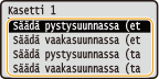 <Säädä pystysuunnassa (etusivu)>/<Säädä pystysuunn. (takasivu)> | | <Säädä vaakasuunn. (etusivu)>/<Säädä vaakasuunn. (takasivu)> |