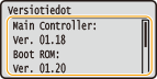 Laiteohjelmistoversion tarkistaminenVoit tarkistaa laiteohjelmistoversion laitteen käyttöpaneelista. Kun laiteohjelmisto on päivitetty, varmista, että päivitys suoritettiin oikein. Laiteohjelmistoversion tarkistaminen |