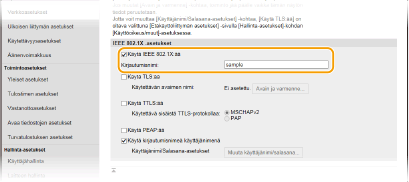 Valitse [Käytä IEEE 802.1X:ää] -valintaruutu ja syötä kirjautumisnimi [Kirjautumisnimi]-tekstiruutuun.