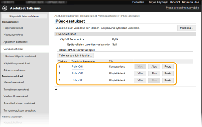 Järjestä kohdassa [Tallenna IPSec-toimintaohjeet] luetellut käytännöt.
