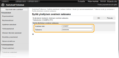 Asenna avain ja varmenne napsauttamalla [Avain- ja varmenneasetukset] tai asenna CA-varmenne napsauttamalla [CA-varmenteen asetukset].