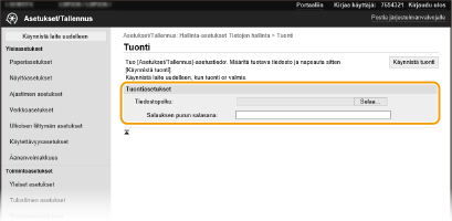 Syötä salasana, joka asetettiin asetusten viennin yhteydessä.