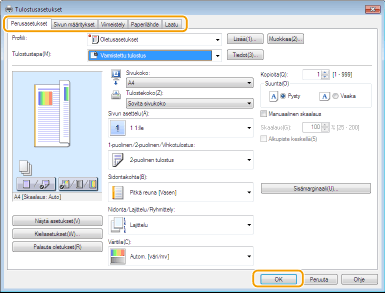 Määritä tulostusasetukset tarpeen mukaan ja napsauta [OK].