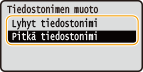 Valitse <Lyhyt tiedostonimi> tai <Pitkä tiedostonimi>